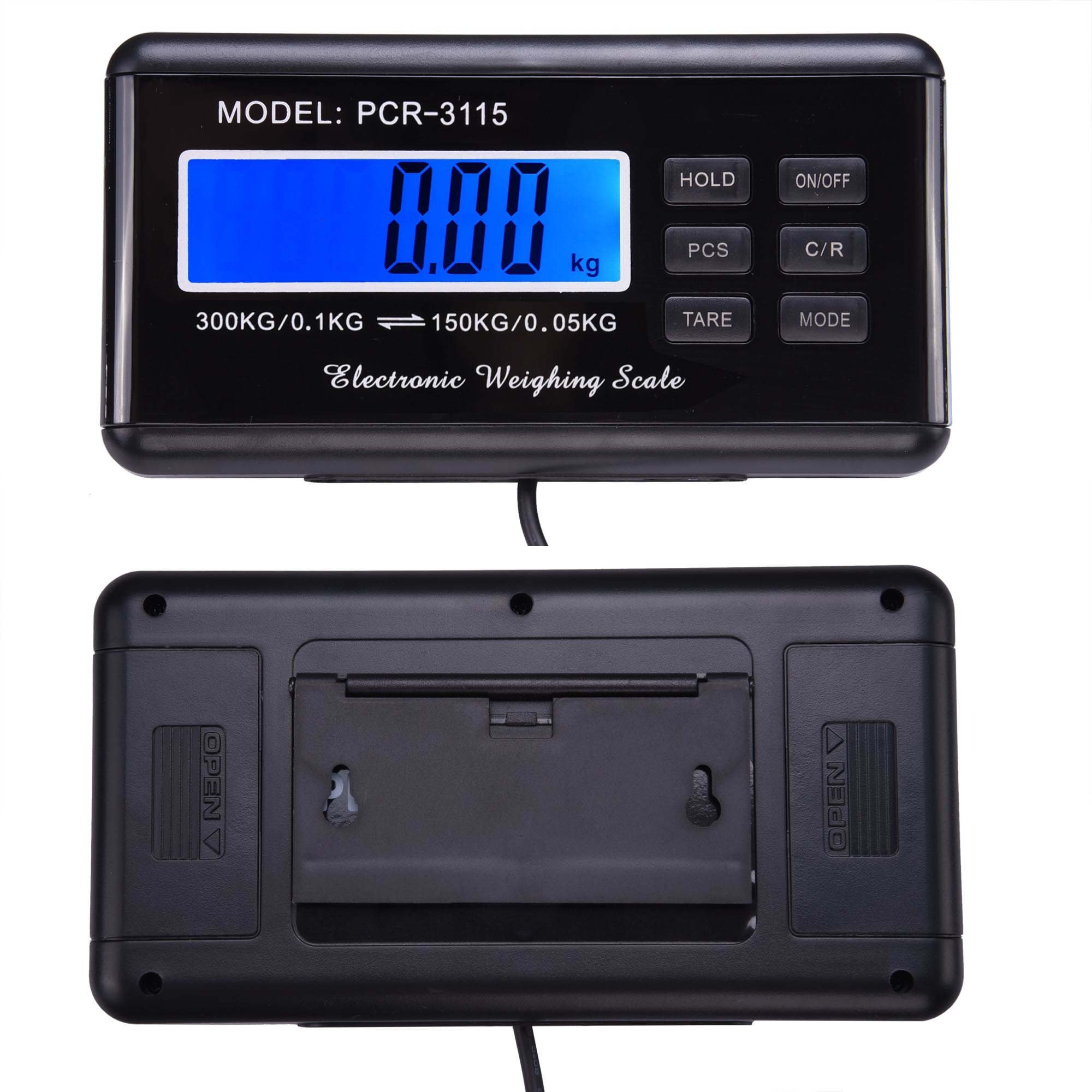 LCD Screen - displays the real-time weight, also with mounting holes for wall installation, including On/Off, Hold, Mode, Tare, C/R, PCS buttons for different weighing functions