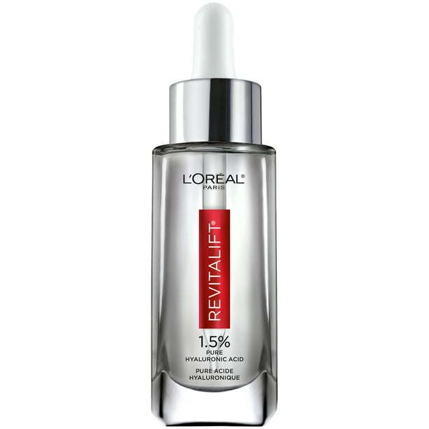 L'Oreal Paris Revitalift Pure Hyaluronic Acid Serum; A dermatologist validated; highly-concentrated; anti-aging plumping hyaluronic acid serum that immediately hydrates and fills wrinkles in 2 weeks. Our Pure Hyaluronic Acid formula is infused with Vitamin C; a vital antioxidant known to boost skin's radiance. What Does Hyaluronic Acid Do? Hyaluronic Acid is a potent hydration-attracting molecule naturally found in the skin; but we lose it as we age which leads to lack of firmness and dryness. Hyaluronic Acid is a safe ingredient used by dermatologists for its intensely hydrating and replumping properties.